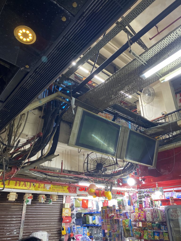 Vi var något förvirrade när vi anlände till adressen som mer såg ut som en ruggig tunnelbanestation än ett hotell. Chungking mansion. På väg mot rätt hiss noterade vi sladdar som hängde ner från taket huller om buller. I vårt pyttelilla rum fick vi äntligen wifi och kunde skicka vår lokalisation till våra lokala guider (Bella och Joannes, om det inte framgick). Varpå vi fick veta att vi bokat in oss i en av Hong Kongs mest ökända byggnader.