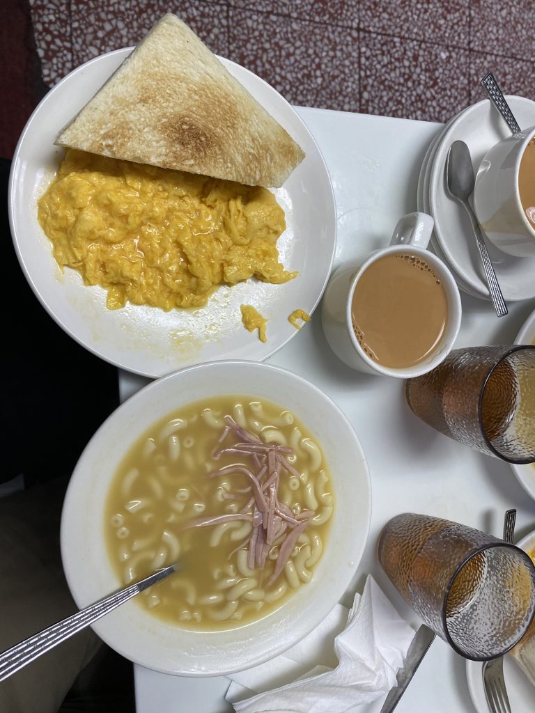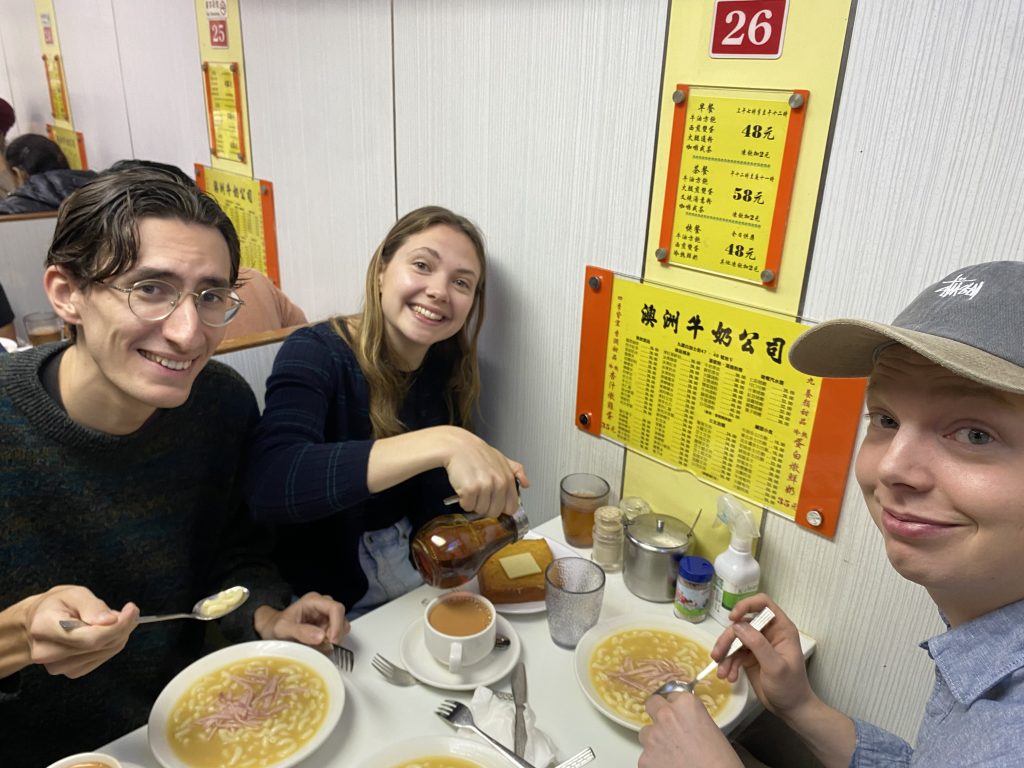 Lördagen startade med att vi begav vi oss mot ”Australian dairy”, vilket inte har något med Australien att göra? Där käkade vi en typisk Hong Kong frukost. Vad är då det? Nudlar tänker kanske du? Nej. En soppa med makaroner och skinka, bäst beskriven som en vattnig mac and cheese, men utan cheese. Godare än vad det ser ut och låter, men kanske inte vad jag väntat mig. Därtill ”Milk tea” och rostat bröd med äggröra.