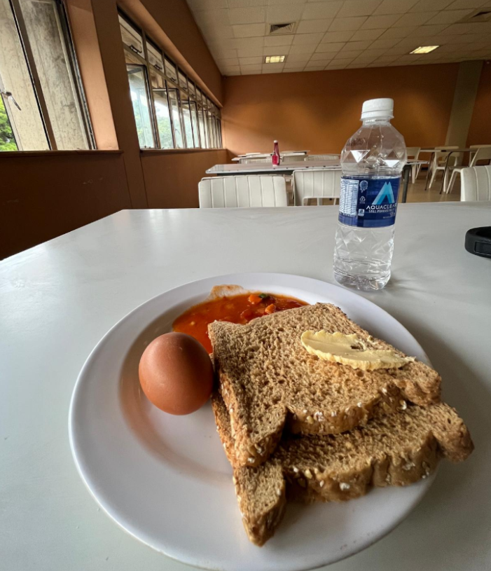 Eftersom 3 måltider/dag var inkluderad i vår boendekostnad har vi fått äta mycket traditionell zimbabwisk mat redan från första dagen. Basen består av Sadza som är en slags majsgröt som kan jämföras med en fast typ av svensk potatismos. Vanligtvis serverar man den tillsammans med grönsaker eller köttgrytor, enkelt men mättande. Måltiden äts med bestick eller med händerna. Till frukost serverades bröd med kokta ägg, äggröra, korv eller bönor och te.