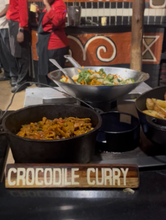 Förutom restauranger i Harare har vi hunnit testa olika maträtter på resor vi gjort under helger och ledigheter. Bland annat har vi njutit av seafood vid vattnet och canapés vid ett djurreservat. Min resekamrat har till och med hunnit testa en strutsburgare och krokodilcurry!